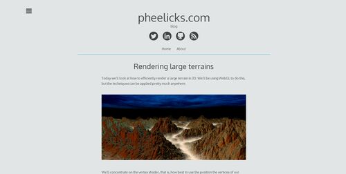 pheelicks.com | Rendering large terrains なかなか見ごたえがある。 コードも惜しみなく公開されている。
